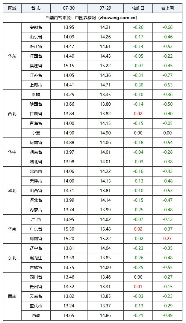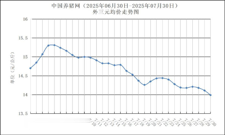 2025年07月30日-中国养猪网生猪(外三元)均价涨跌表